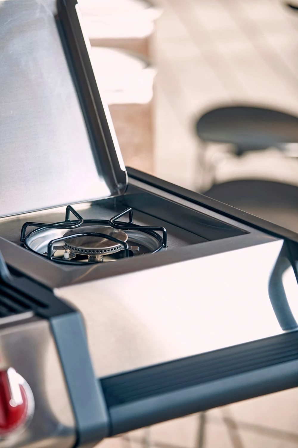Vervollständigt werden die Vielfältigen Zubereitungsmöglichkeiten mit einem praktischen Seitenkocher . Der klassische Seitenkocher mit Ringbrenner bietet die Möglichkeit Beilagen, Saucen, Suppen, Eintöpfe oder Pfannengerichte komfortabel zuzubereiten, ohne dabei die Grillfläche in Anspruch nehmen zu müssen.