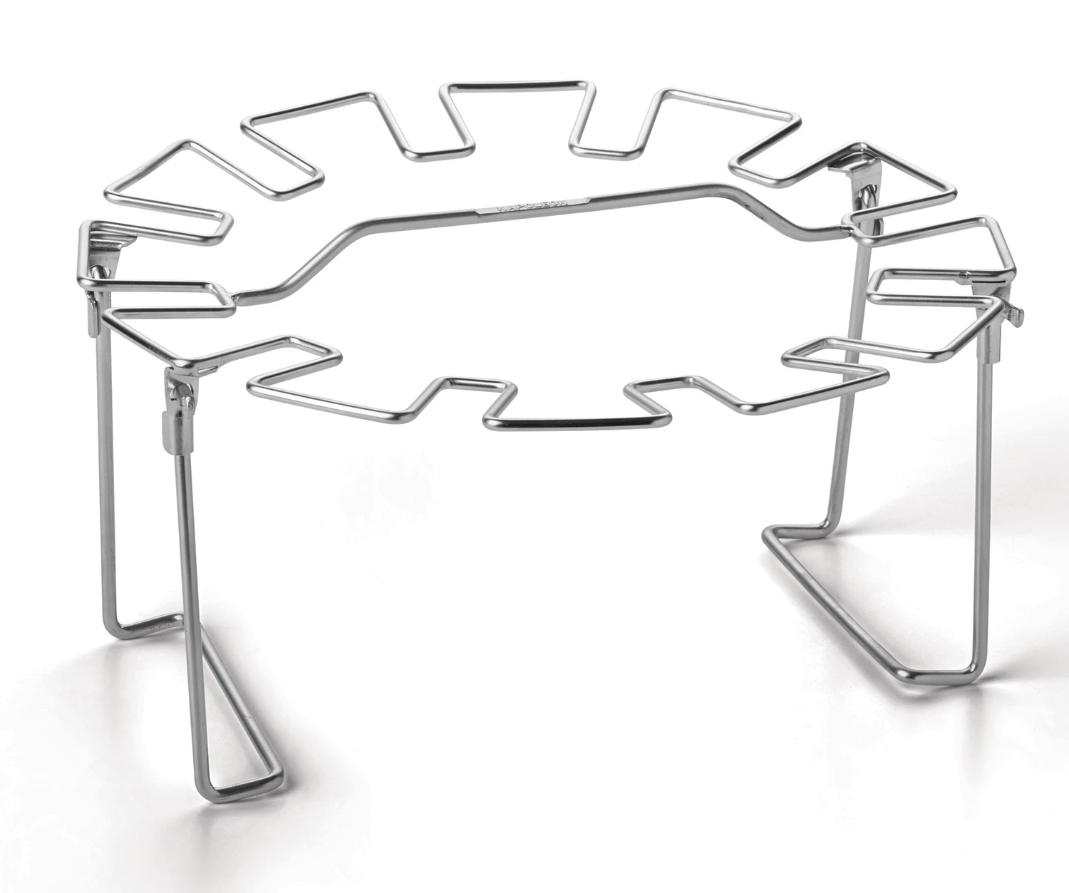 Der Hähnchenkeulenhalter von Napoleon ist klappbar und lässt sich so platzsparend verstauen. Außerdem kann das pflegeleichte Edelstahl einfach in der Spülmaschine gereinigt werden.