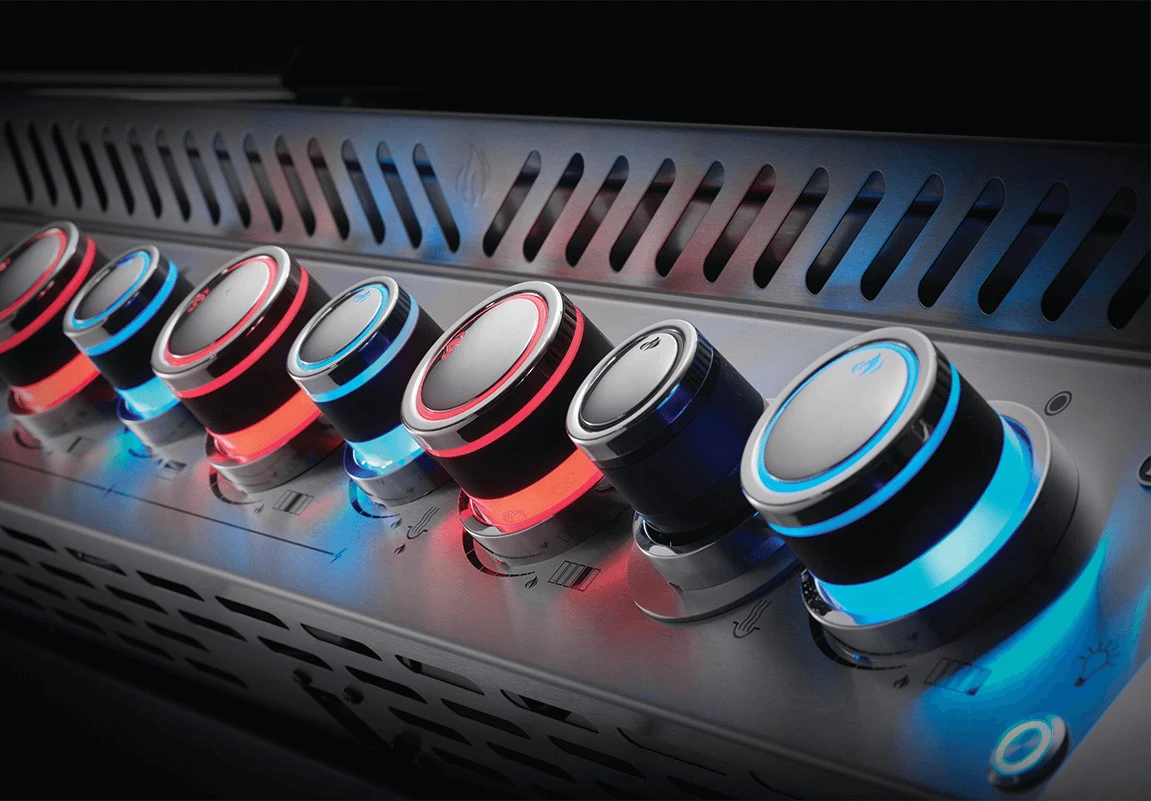 Auch optisch bietet der Prestige Pro 665 ein besonderes Highlight: Neben einer Halogen Garraumbeleuchtung und Safety Glow Drehreglern bietet der Einbaugrill eine stylische Bodenprojektion des Napoleon Logos. Inkl. Bewegungsmelder.