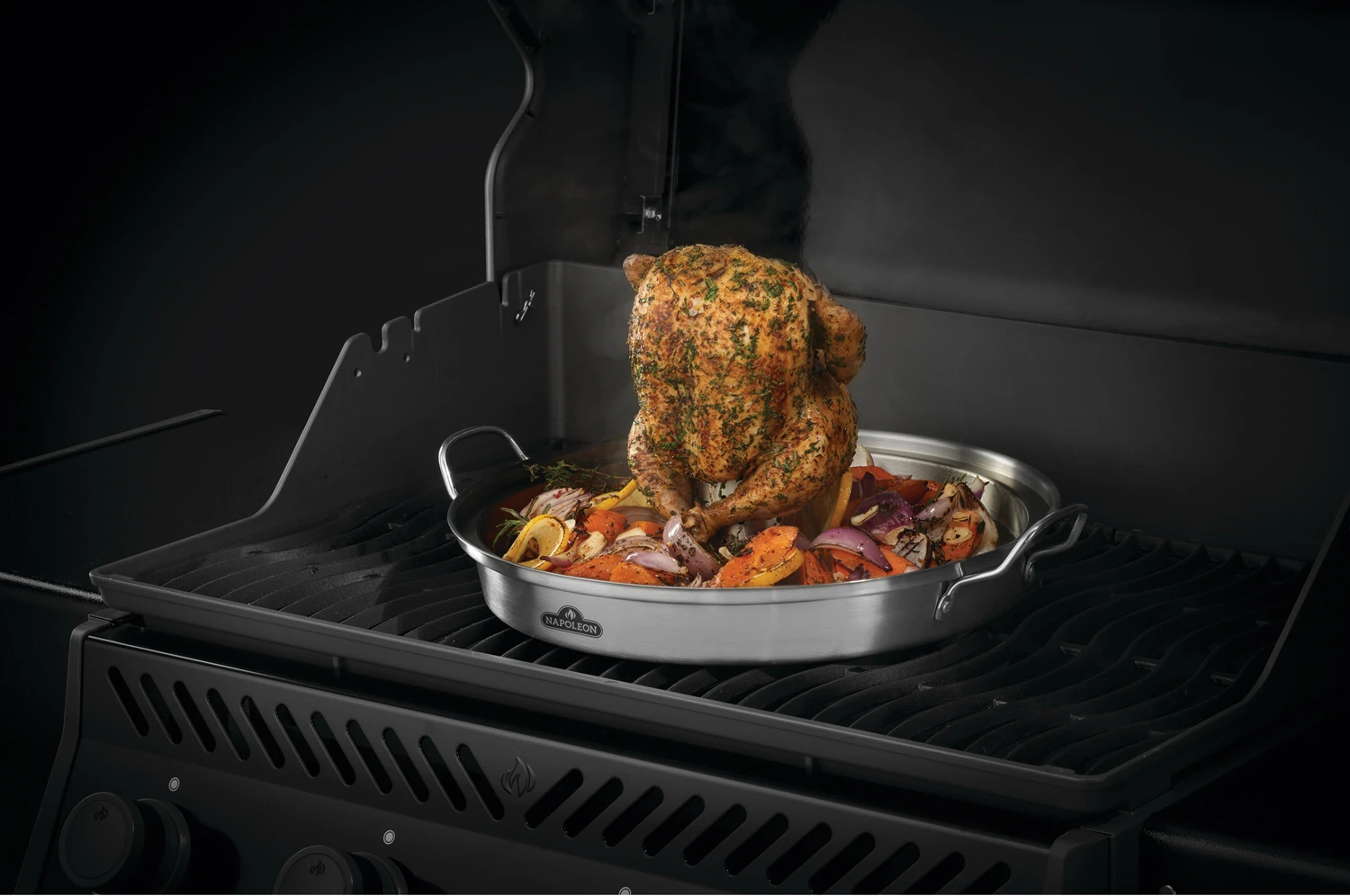 1 x Napoleon Premium Hähnchenbräter mit Edelstahlpfanne