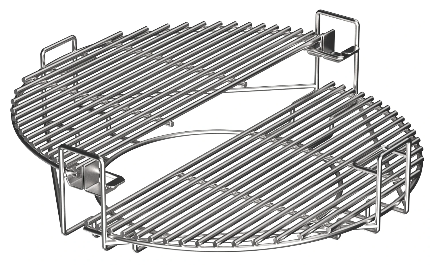 Das Rostsystem besteht aus einem Halter, 2 halben Edelstahlgrillrosten und 2 halben Hitzedeflektoren aus Keramik (Plate Setter). Die geteilten Deflektorsteine ermöglichen das indirekte Grillen auf gesamter oder halber Grillfläche. Durch ihre spezielle Beschichtung sind sie beiden Deflektorsteine besonders pflegeleicht und verschmutzen nicht so leicht.